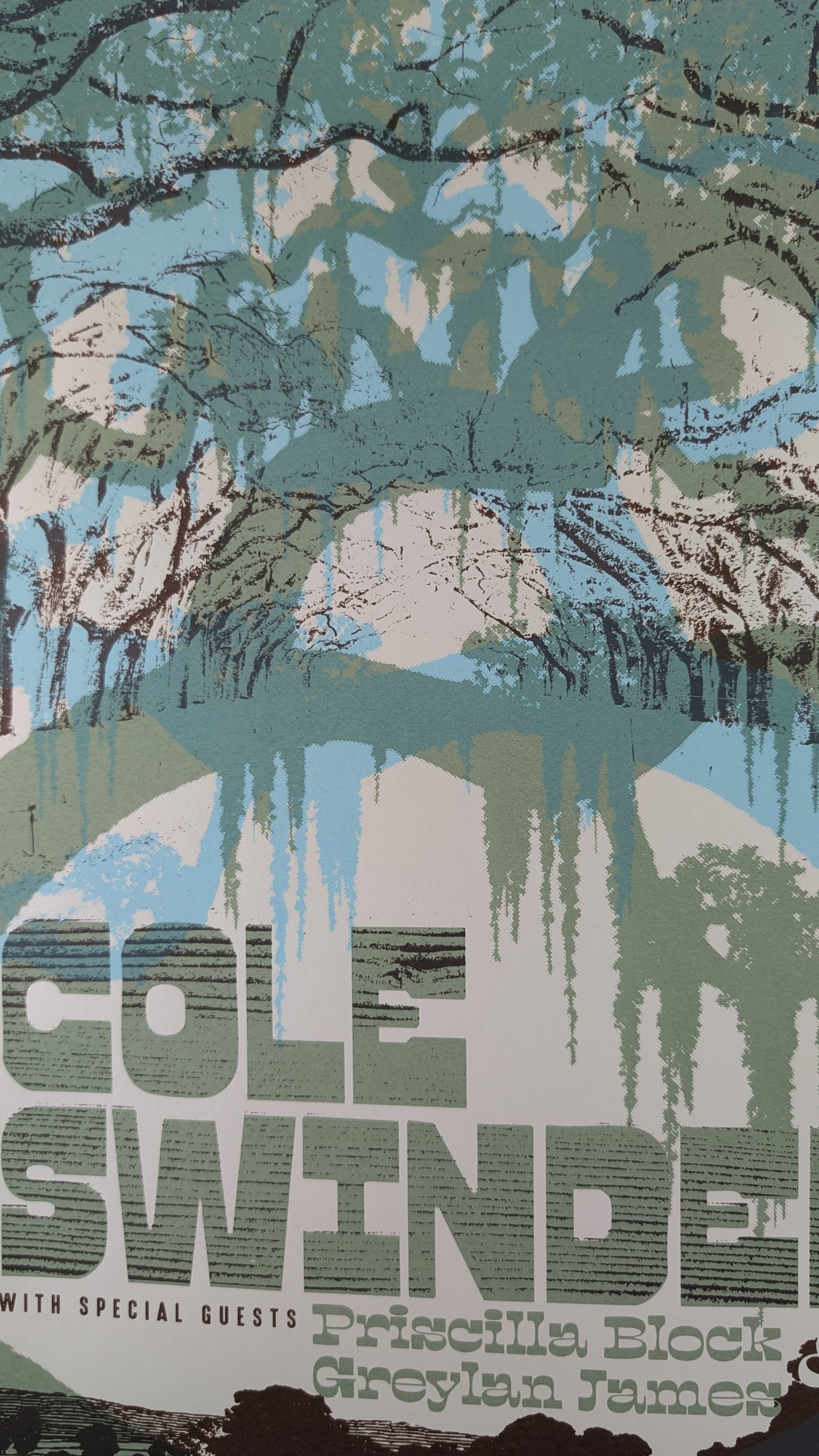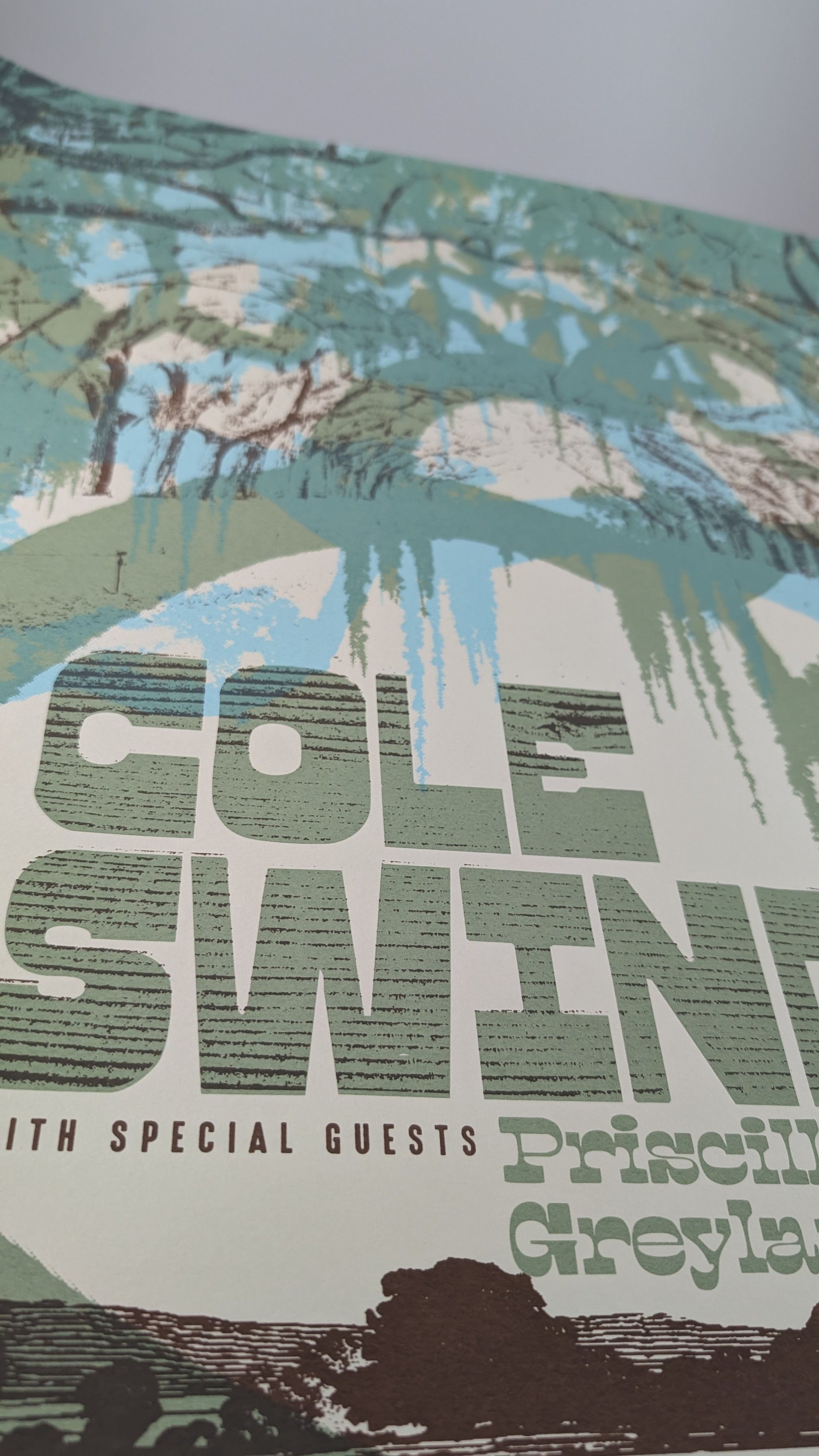 Three color limited edition screen print from Cole Swindell's show in Clearwater, Florida, 2025.