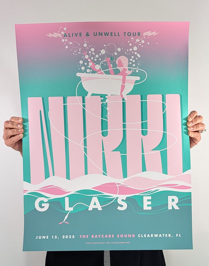 Official screen printed poster for Nikki Glaser's stop at The Baycare Sound